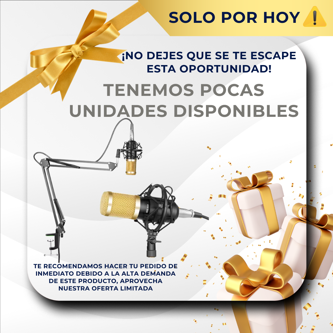 Incluye soporte, filtro antipop, espuma antiviento y más. ¡Todo el kit completo!